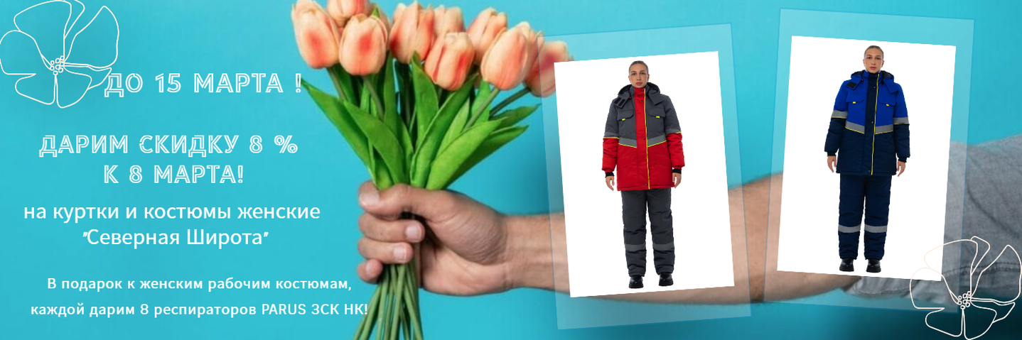 Поздравляем с праздником прекрасную половину человечества и дарим скидку 8 % к 8 марта! На женские куртки и костюмы "Северная...