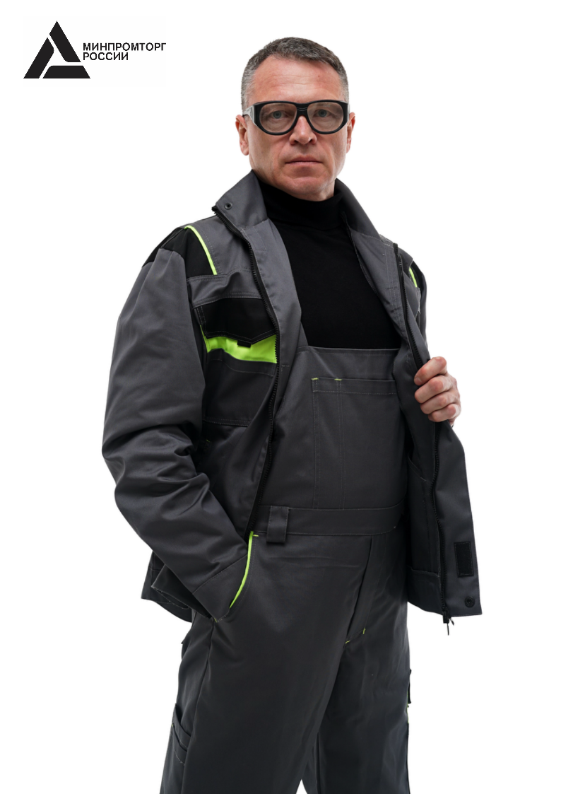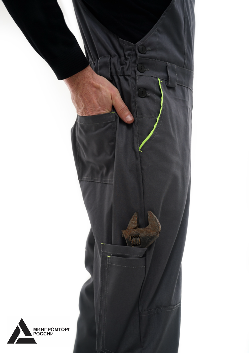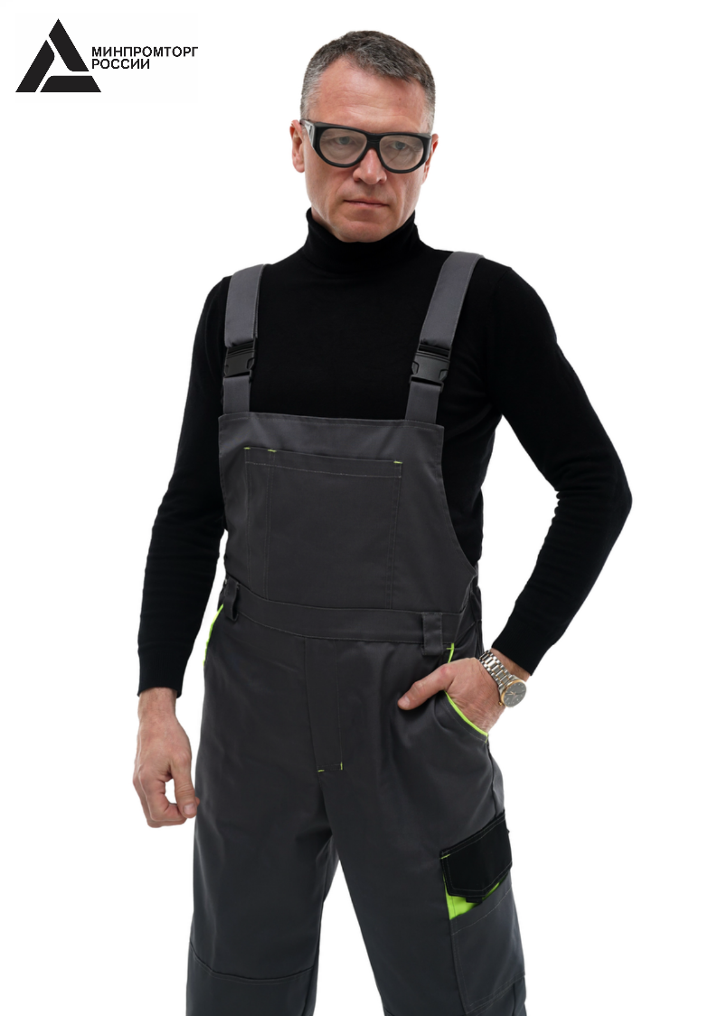 Костюм мужской летний «МЕХАНИК» (куртка+полукомбинезон) цв.серый/черный БОЛЬШОЙ РАЗМЕР