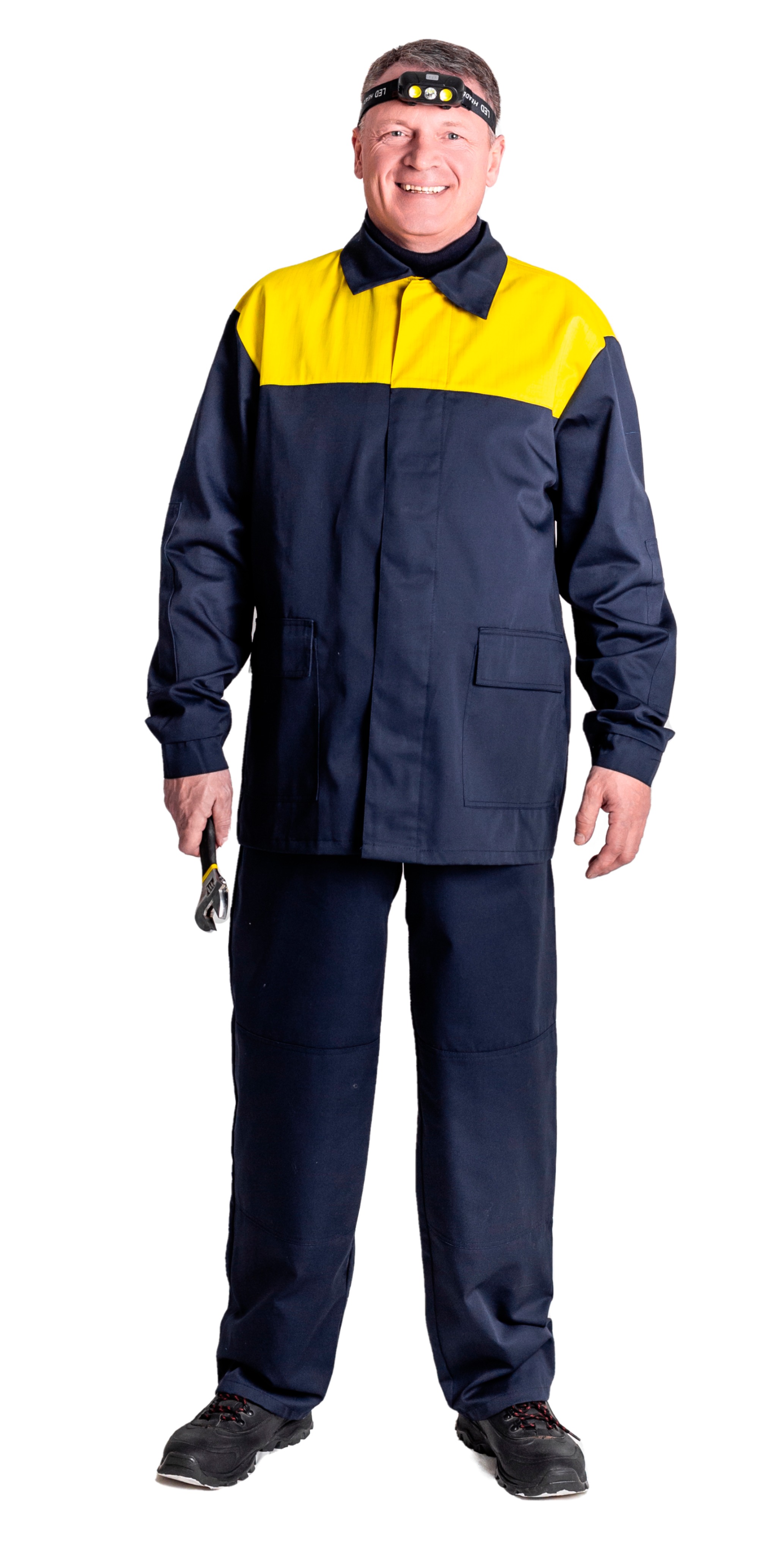 Ткань основная: 100% хлопок, антистатическая нить, с МВО отделкой, пл. 250 г/м²
