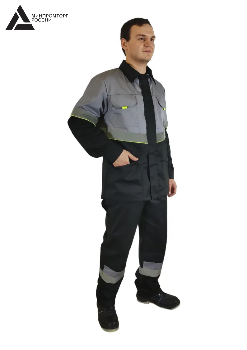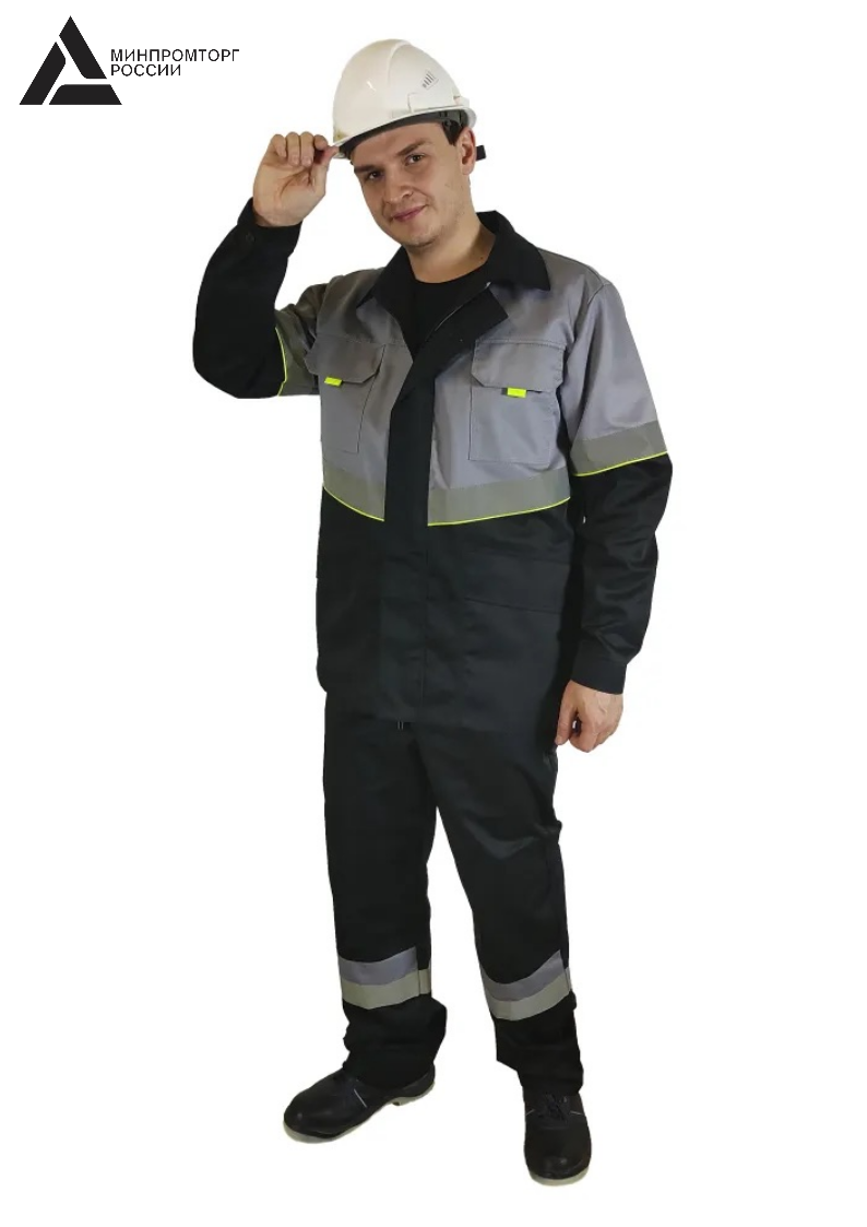 Костюм мужской летний «ЮЖНАЯ ШИРОТА» (куртка+полукомбинезон) цв.черный/серый