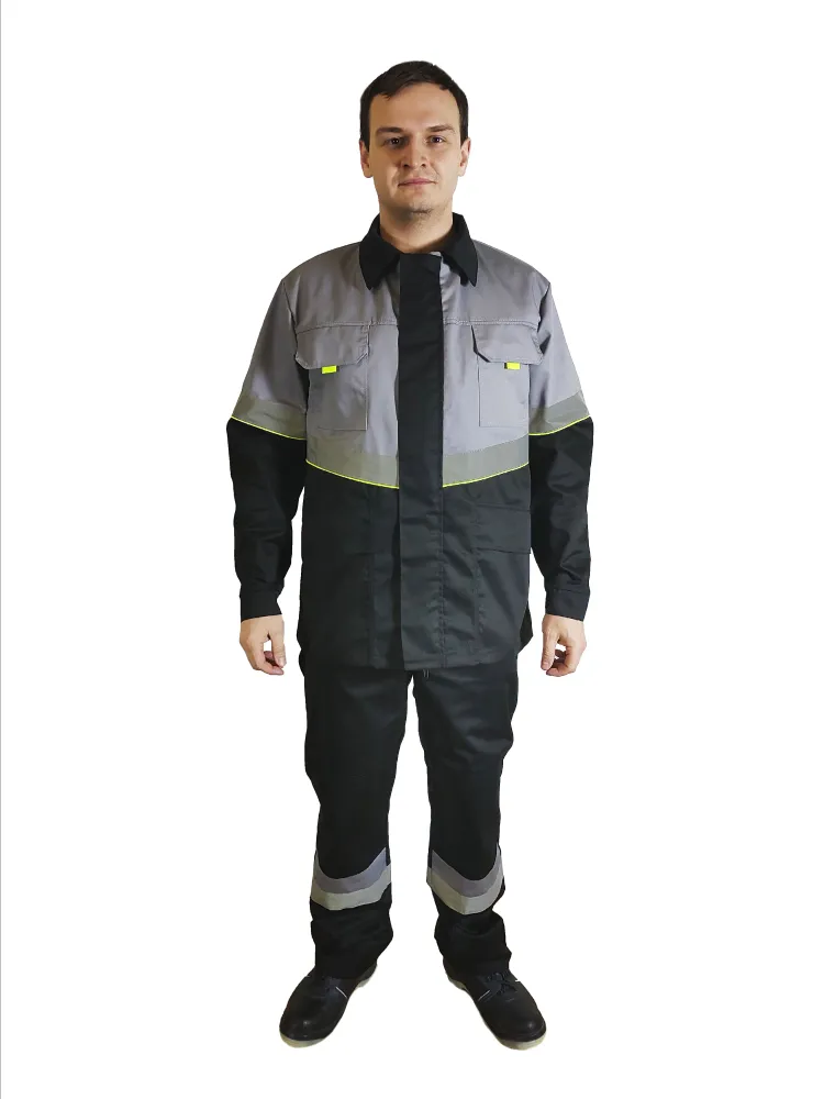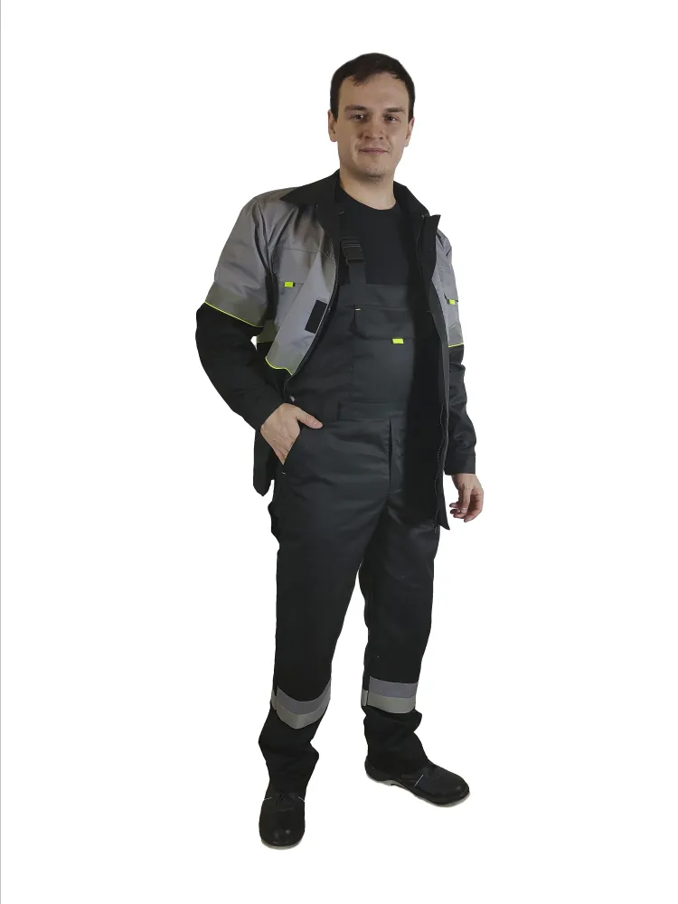Костюм мужской летний «ЮЖНАЯ ШИРОТА» (куртка+полукомбинезон) цв.черный/серый