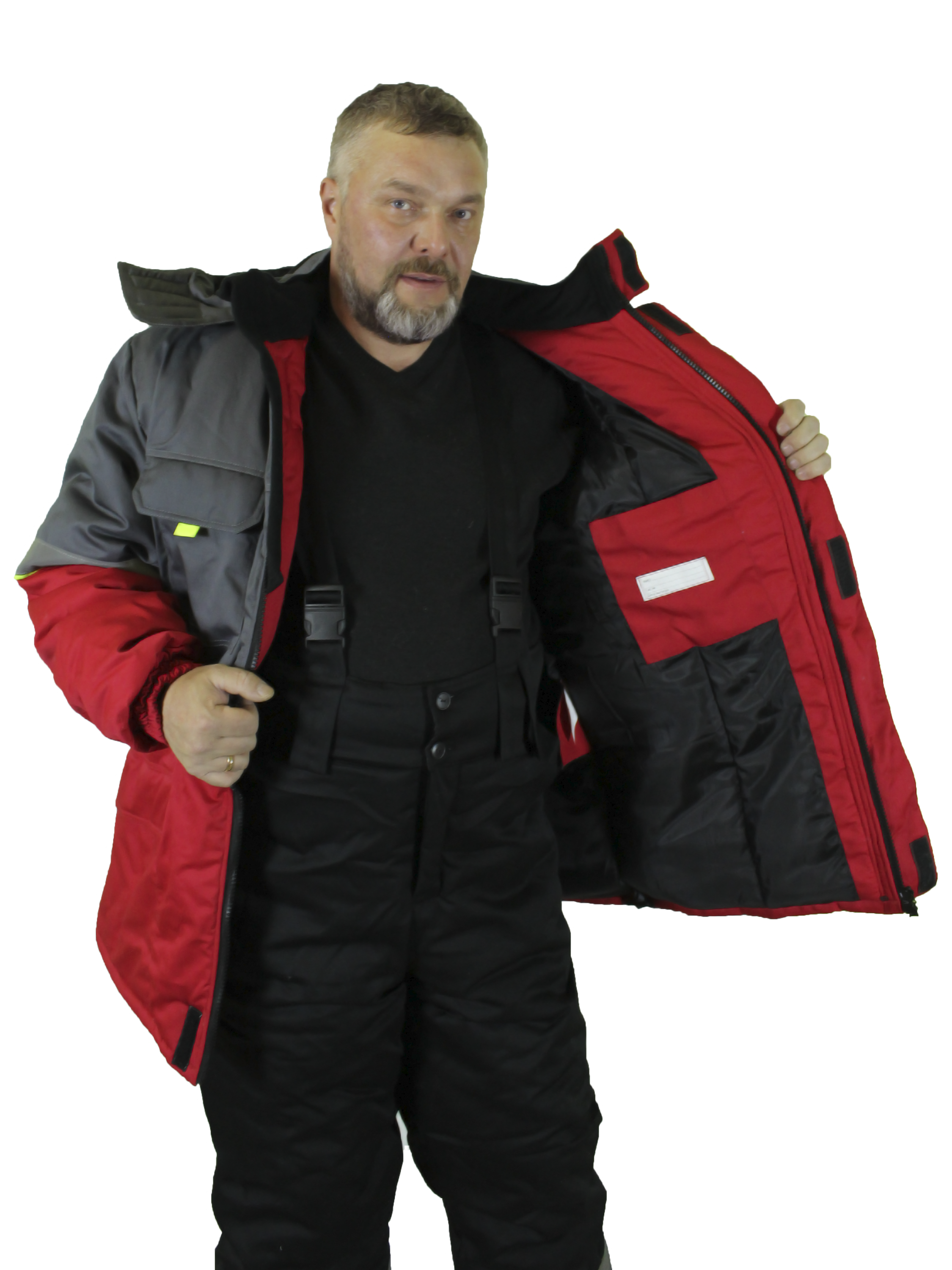 Костюм рабочий утепленный состоит из куртки и брюк.