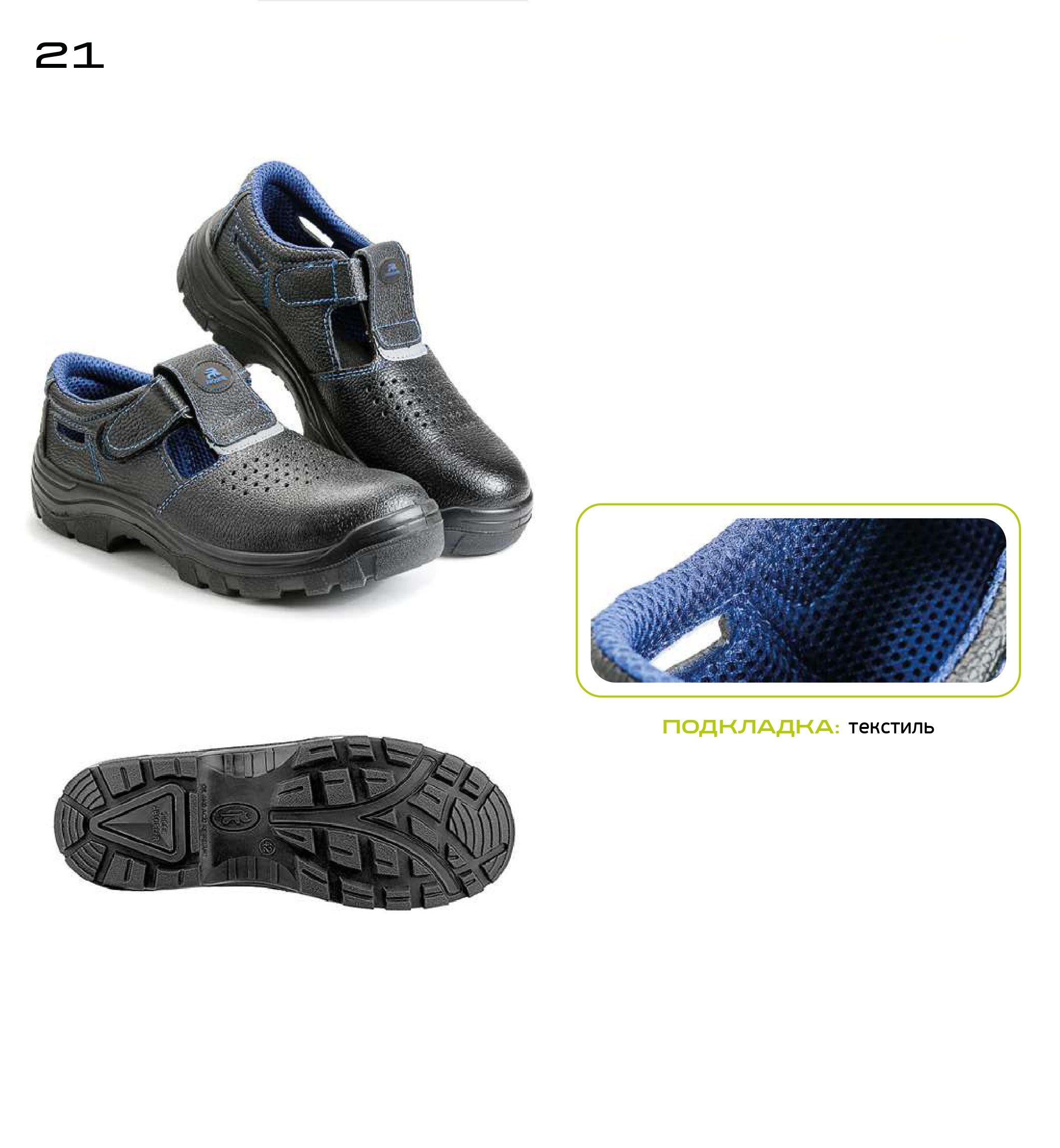 Текстильная сетчатая подкладка и съемная вкладная стелька создают комфортные условия носки в течении рабочей смены.